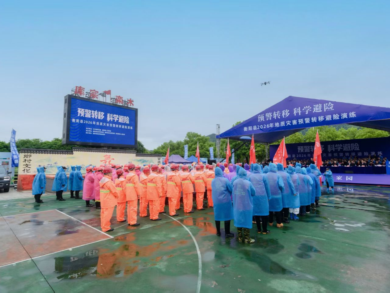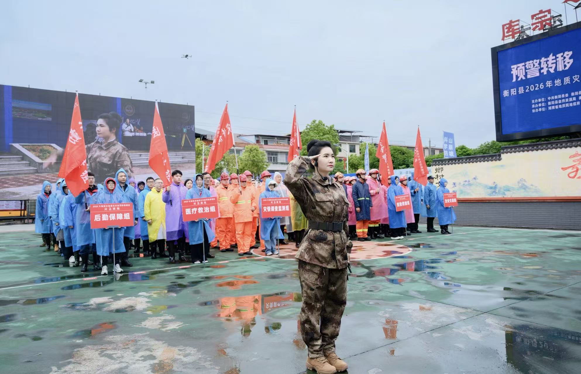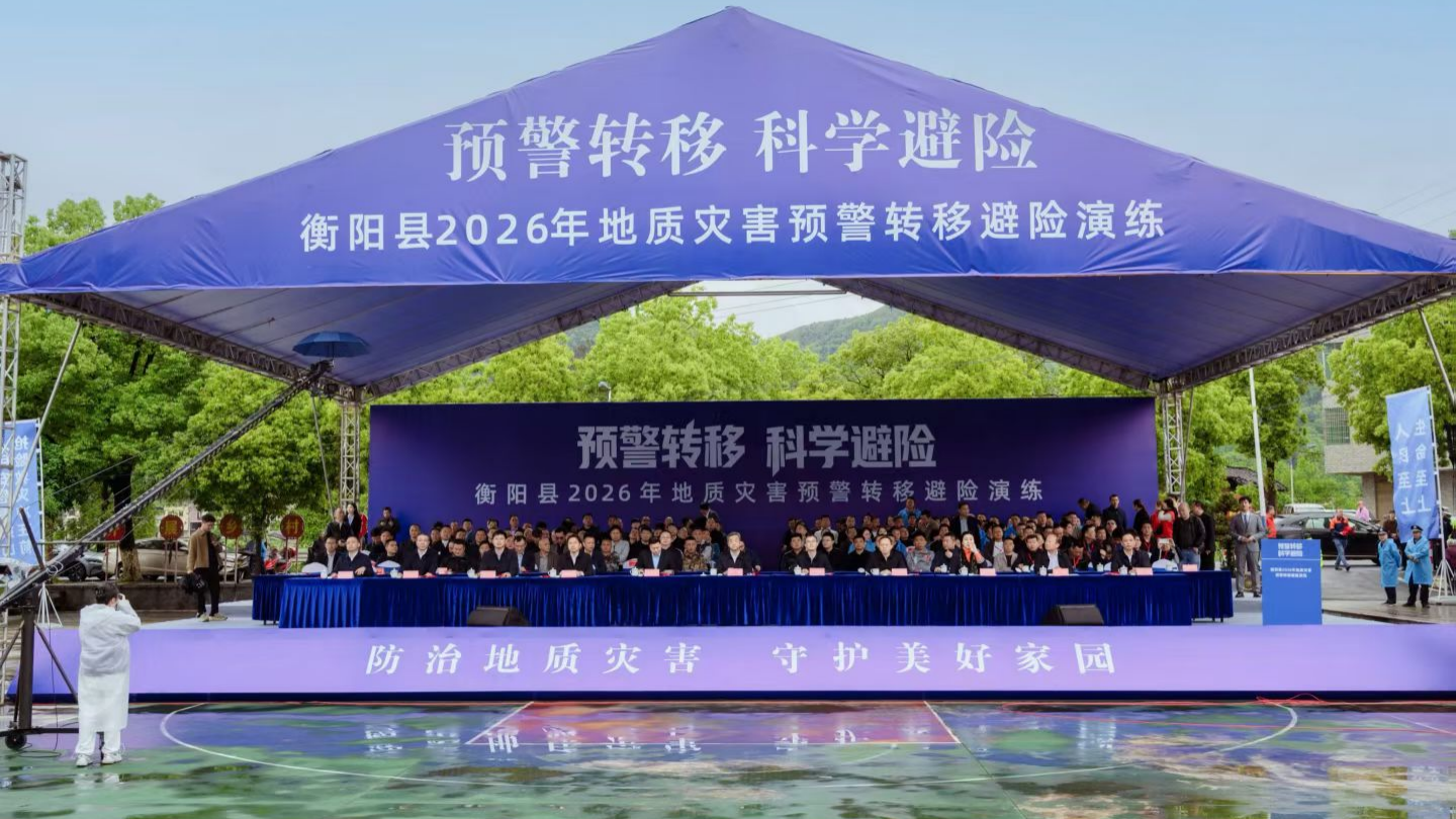 (曾昱 周诗睿)为全面提升地质灾害应急处置能力,筑牢群众生命财产安全防线,4月22日上午,2026年湖南省衡阳县地质灾害预警转移避险演练在库宗桥镇栾木村顺利举行。本次演练由县委、县政府统一部署,模拟栾木村突发地质灾害险情,县自然资源局、应急管理局、气象局、卫健局、消防公安、库宗桥镇人民政府等参演单位快速响应,有序开展预警通知、人员疏散、转移避险、医疗救护等各项应急处置工作,库宗桥镇人民政府切实履行属地责任,做好现场组织、后勤保障、秩序维护等各项工作,确保演练平稳有序、圆满成功。省市县相关领导、衡阳县各乡镇及相关单位代表现场观摩指导。