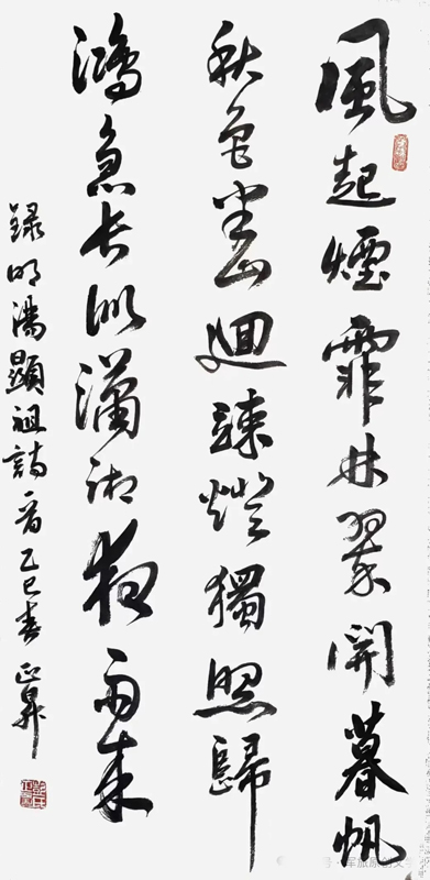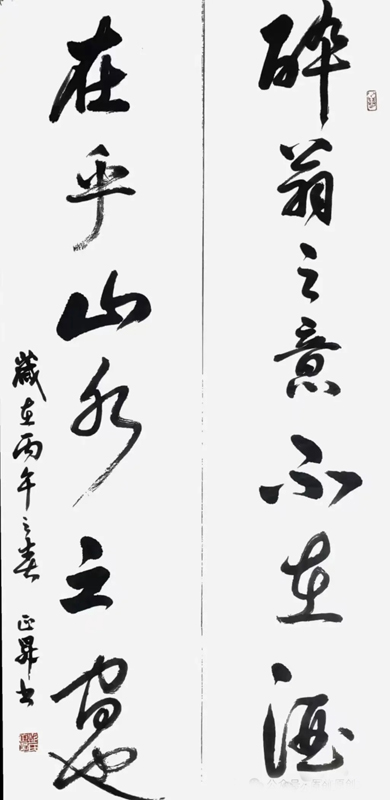 如今已退休的彭正升,一边探索养殖事业,一边坚持书法创作,偶尔带着作品走进城市,与艺术界同道交流精进。在书法、篆刻家彭向飞的支持下,他举办了人生首次书法作品展,并在丙午春节前夕,于临沂市王羲之故居南门外的琅琊篆刻非遗艺术中心,举办“迎新春·二彭(正升、向飞)书法春联暨书画名家作品展”,活动为期十天,现场挥毫送福,传承手写春联传统,以仰圣之姿追寻风雅、汲取灵感,在艺术道路上继续探索前行。