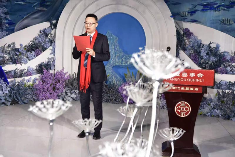 大会由青年新秀五莲华莲家电有限公司副总经理徐祥缤主持,五莲华莲家电有限公司董事长、五莲徐氏联谊会会长、本谱编委会主任徐兴文致欢迎辞。徐兴文主任代表编修委员会向参加这次庆典活动特邀嘉宾、参会宗亲代表的到来表示了最热烈地欢迎和诚挚的感谢!对长期以来关心支持续修逊峰徐氏族谱五公支谱的各界朋友,向支持并积极参与修谱、无私奉献的各位宗长、宗亲致以最崇高的敬意。